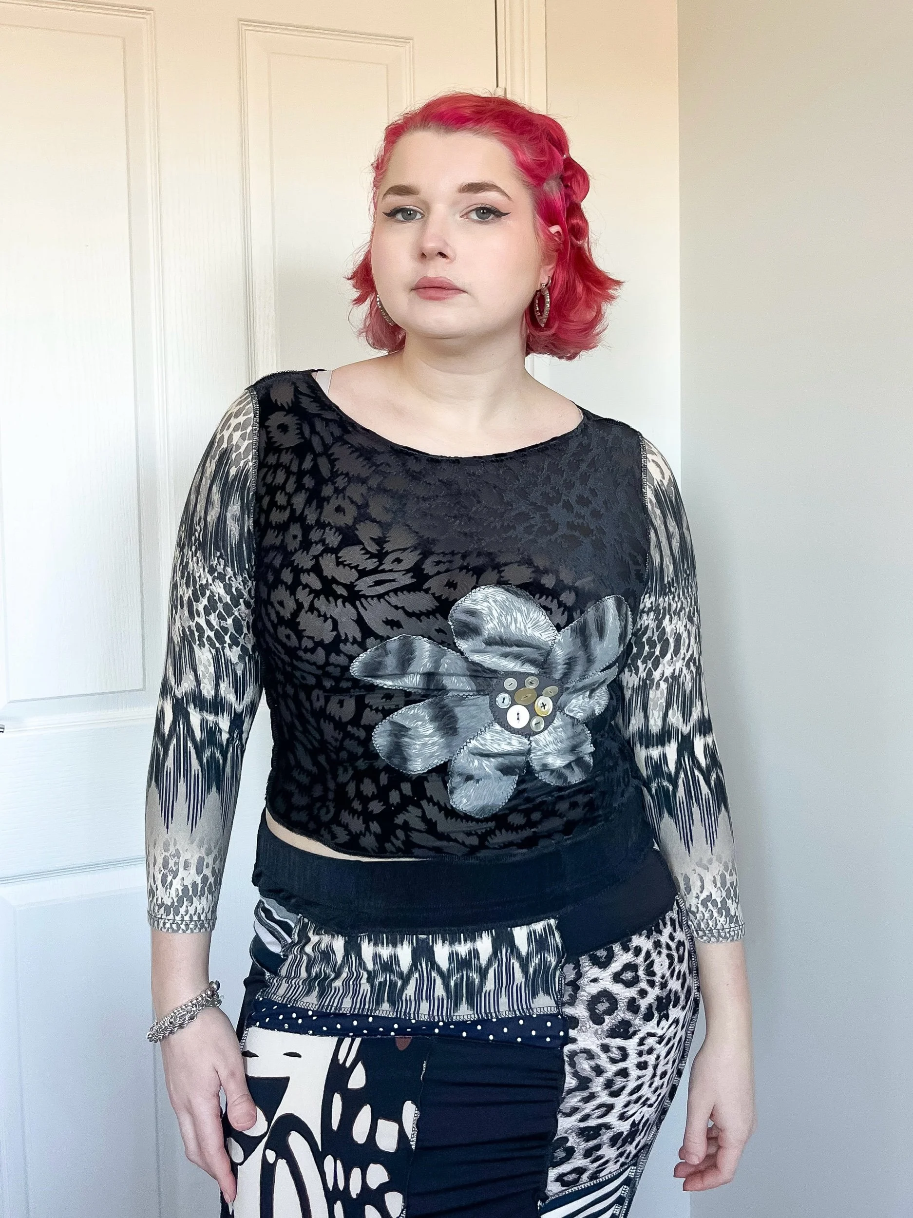 Leopard/grey Flower Patch 3/4 Sleeve (M)