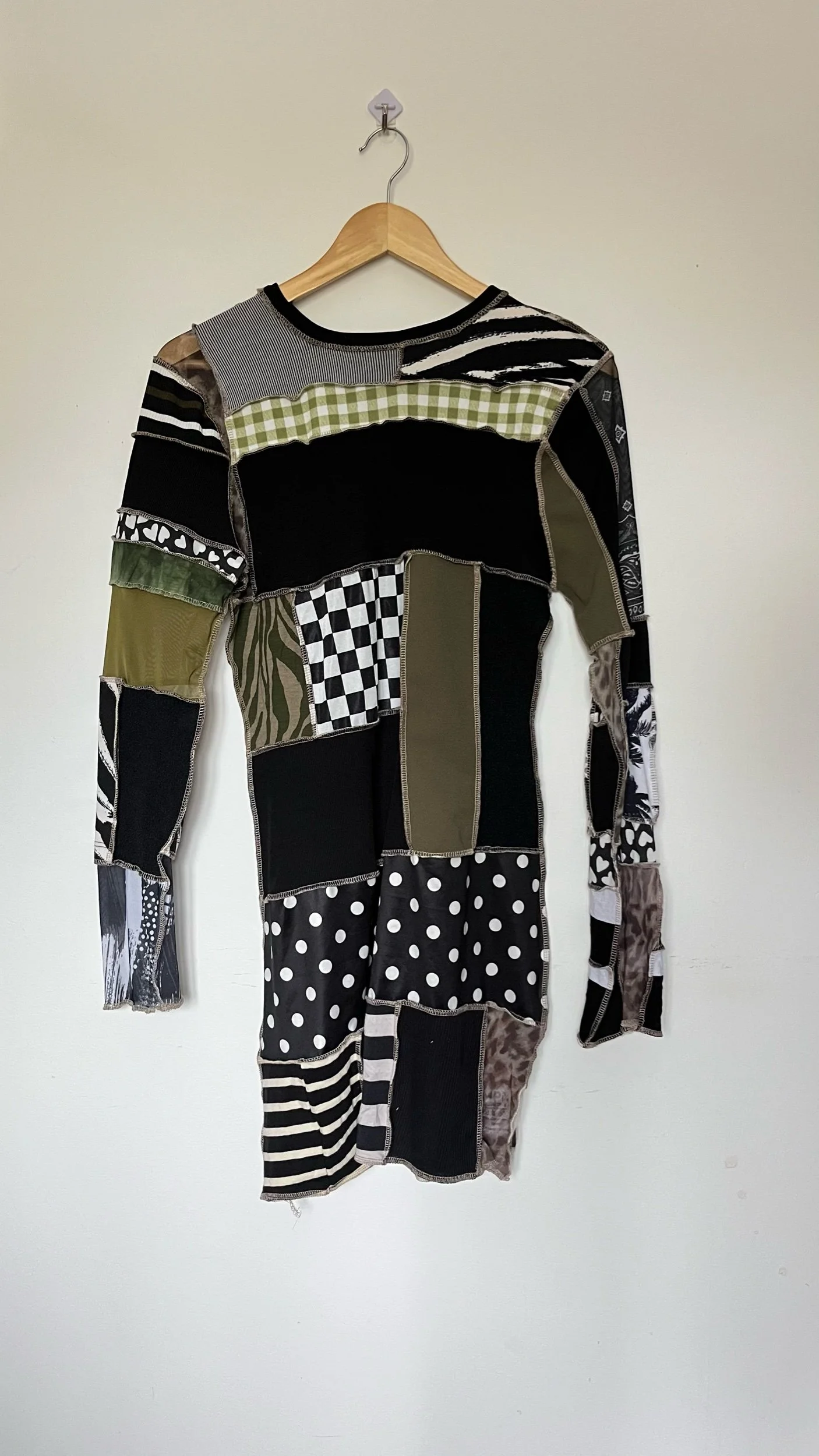 Medium Chest width: stretches to 38” length: 32” sleeve length: 27” sleeve width: 14” waist: 32” hips: 40”