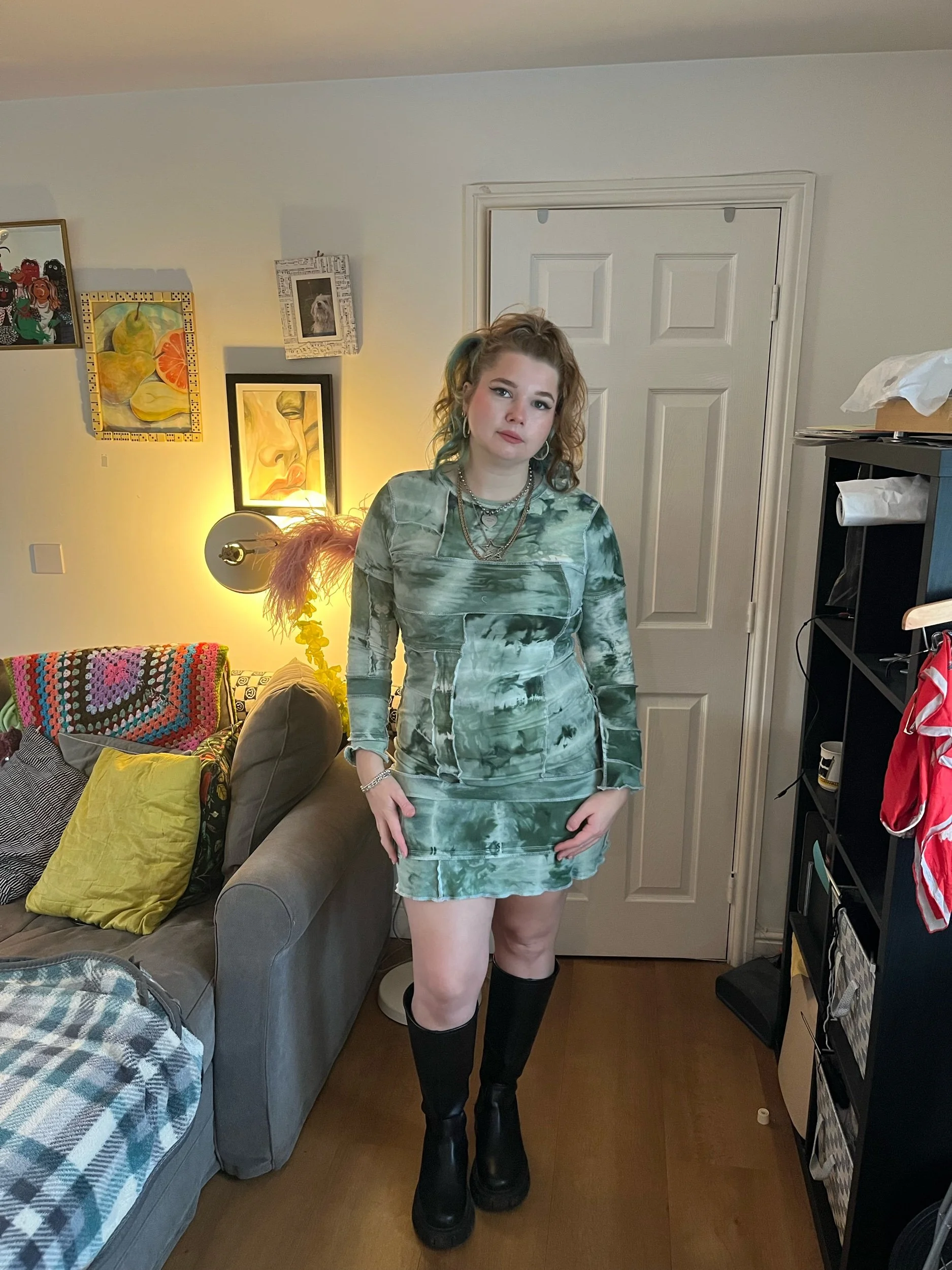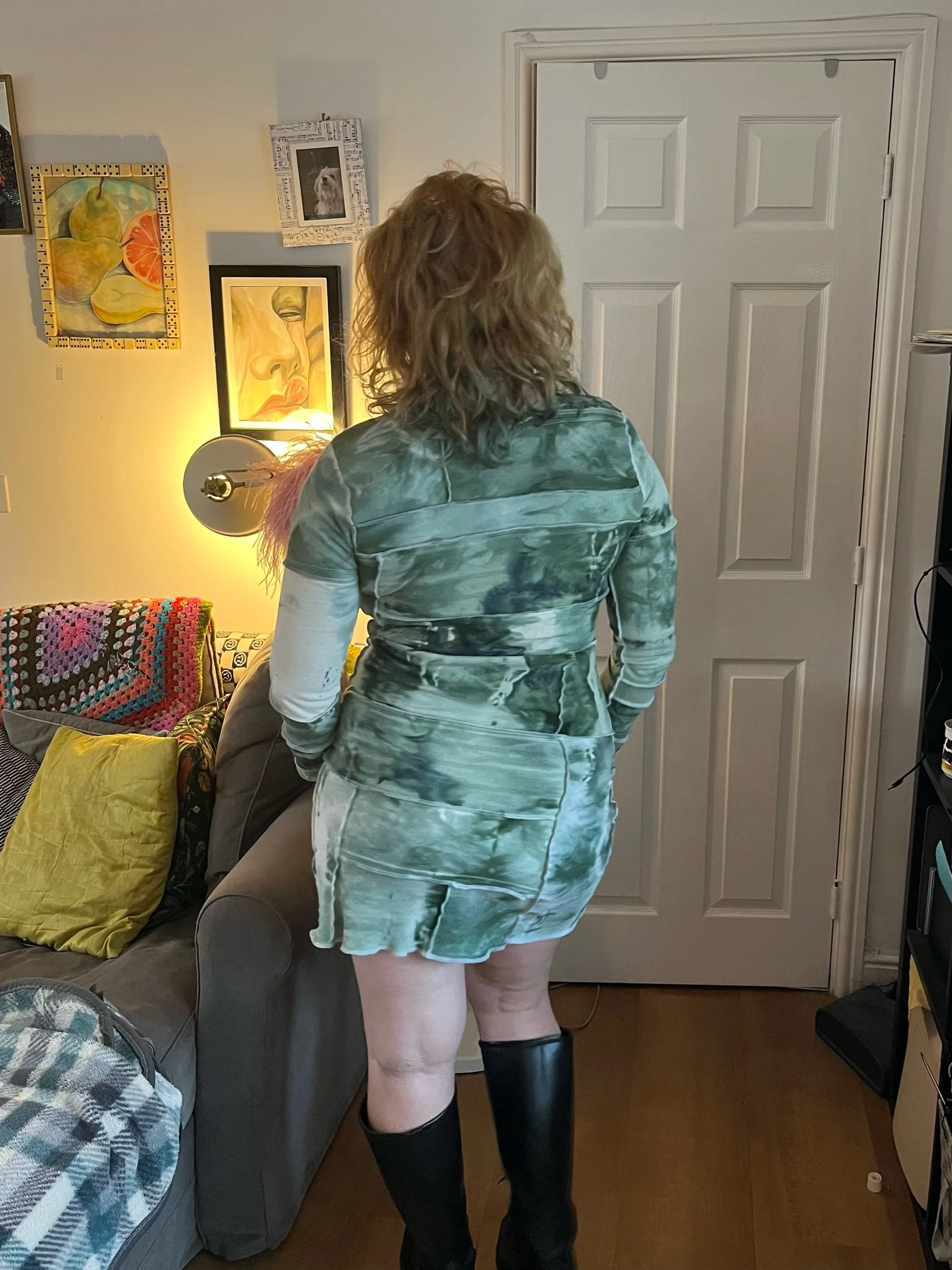 Green Tie-Dye Overlockher Patchwork Dress (M)