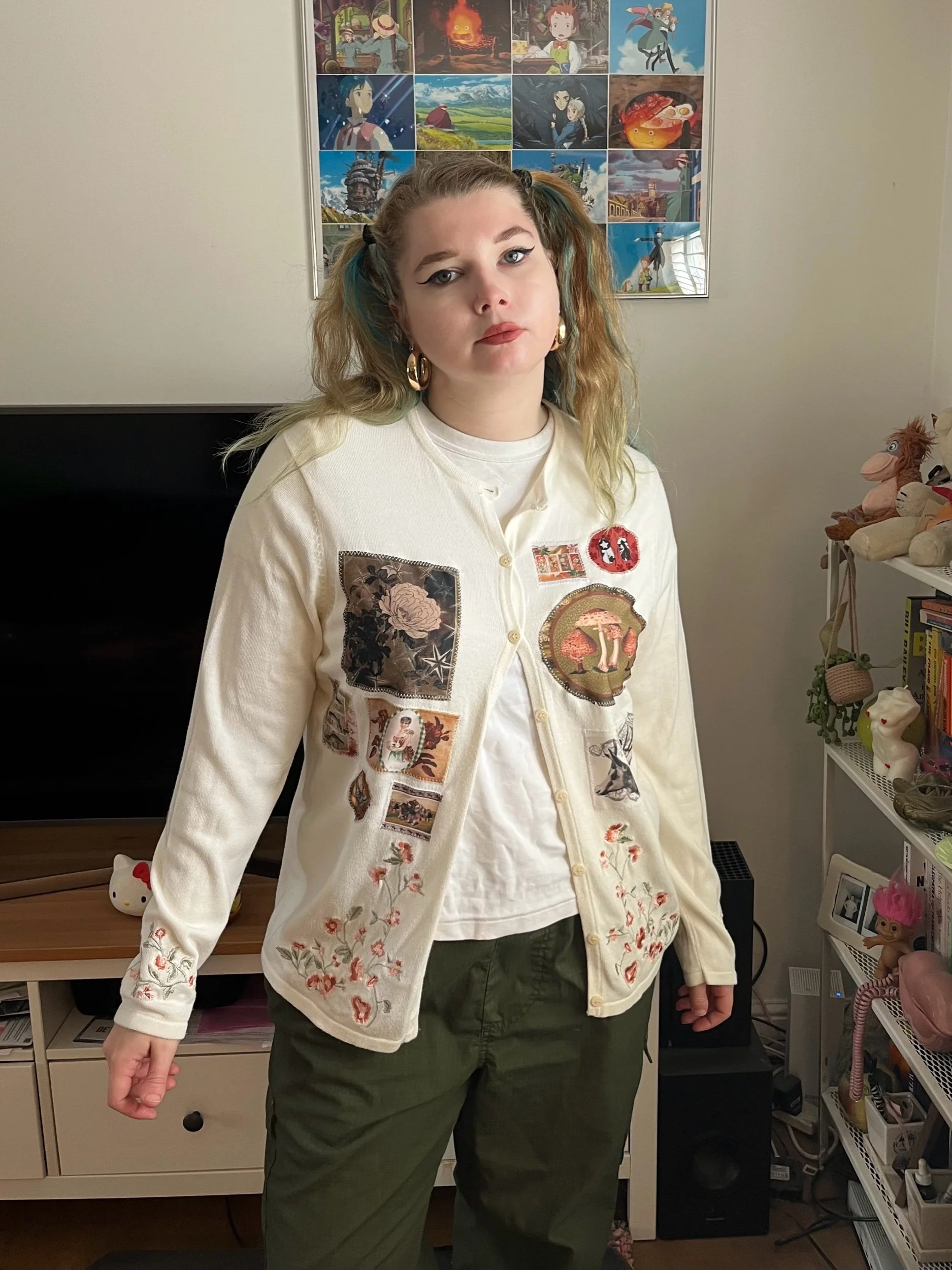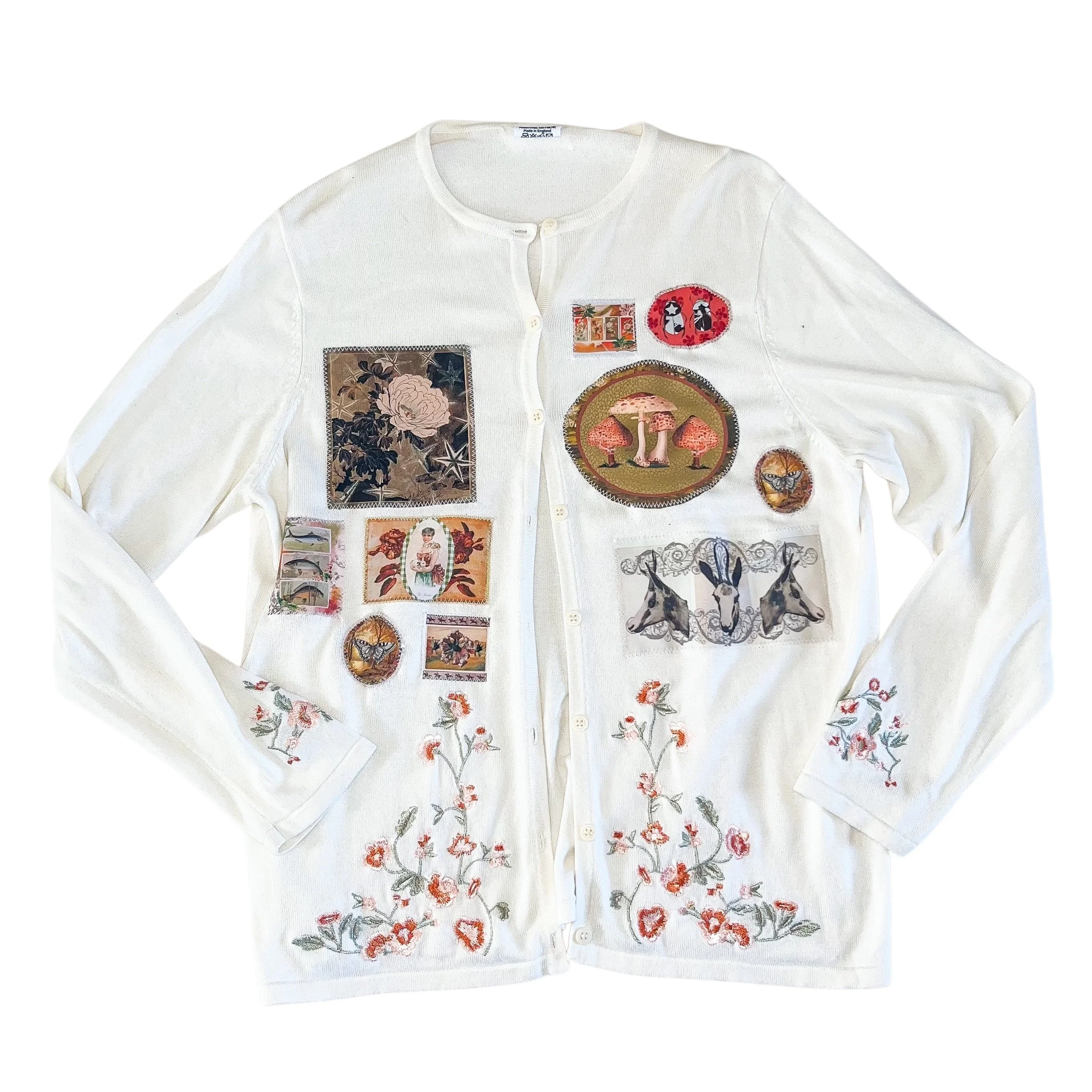 Medium Chest width: stretches to 40” length: 25” sleeve length: 26” sleeve width: 18”