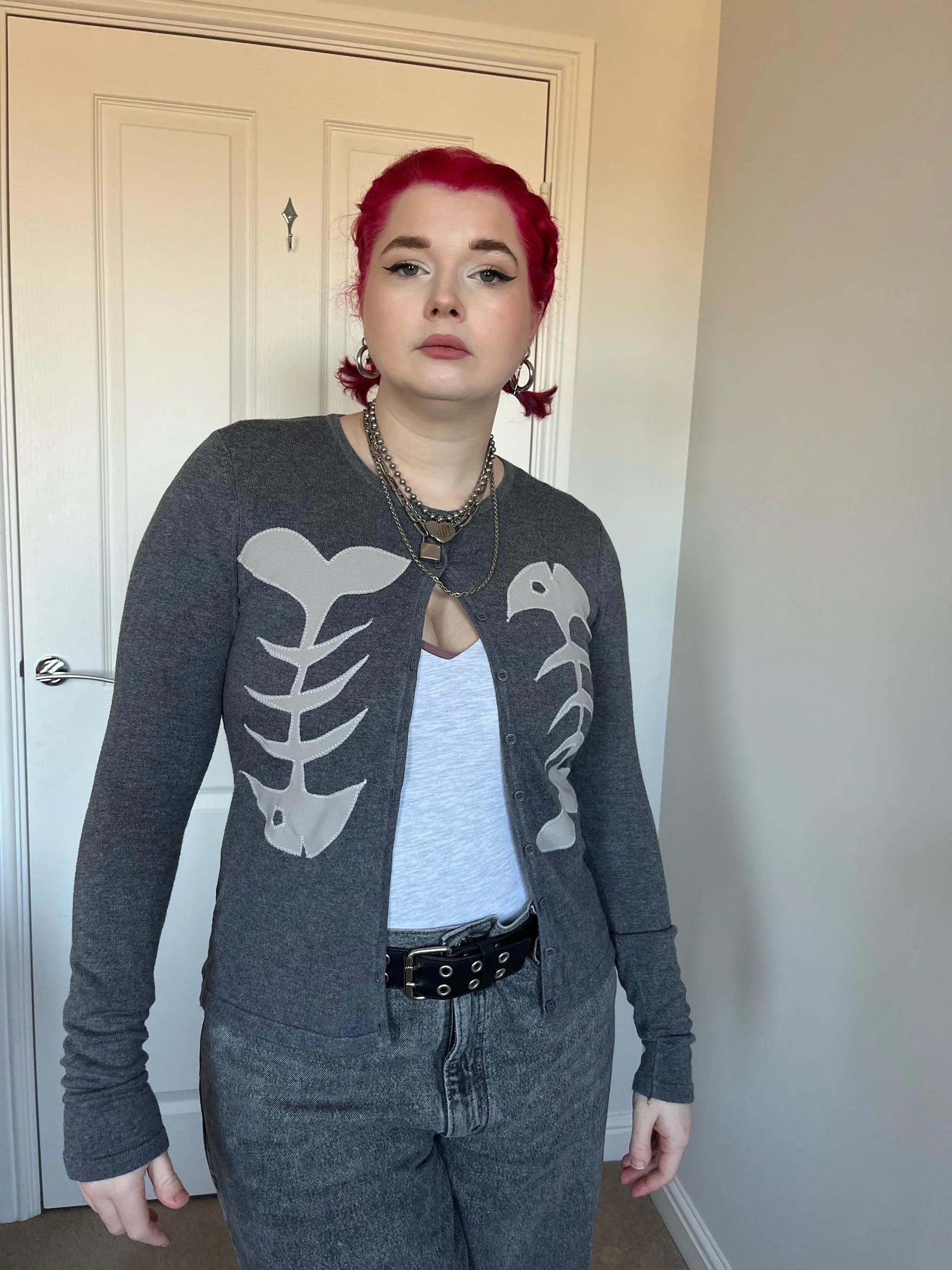 Dark Grey Fish Skeleton Cardigan (S)