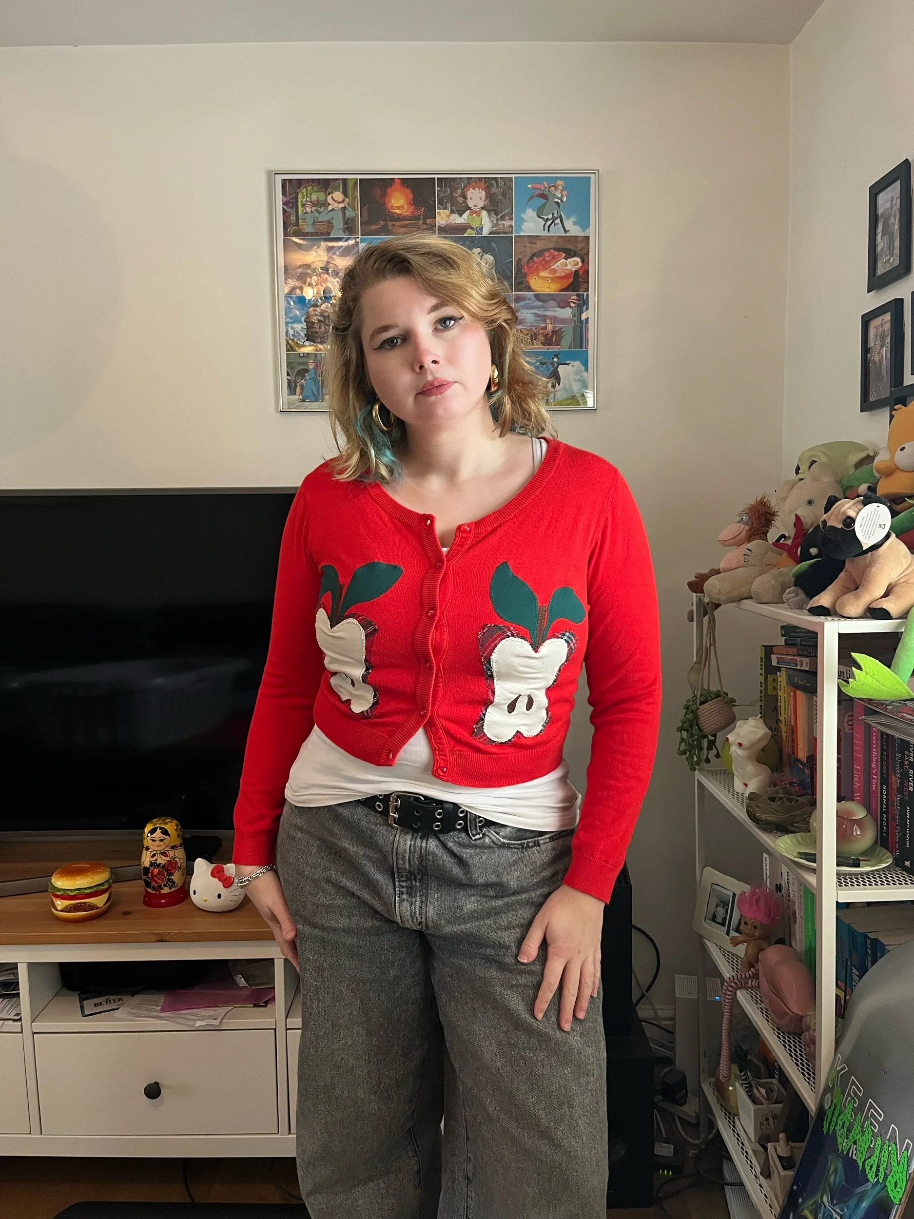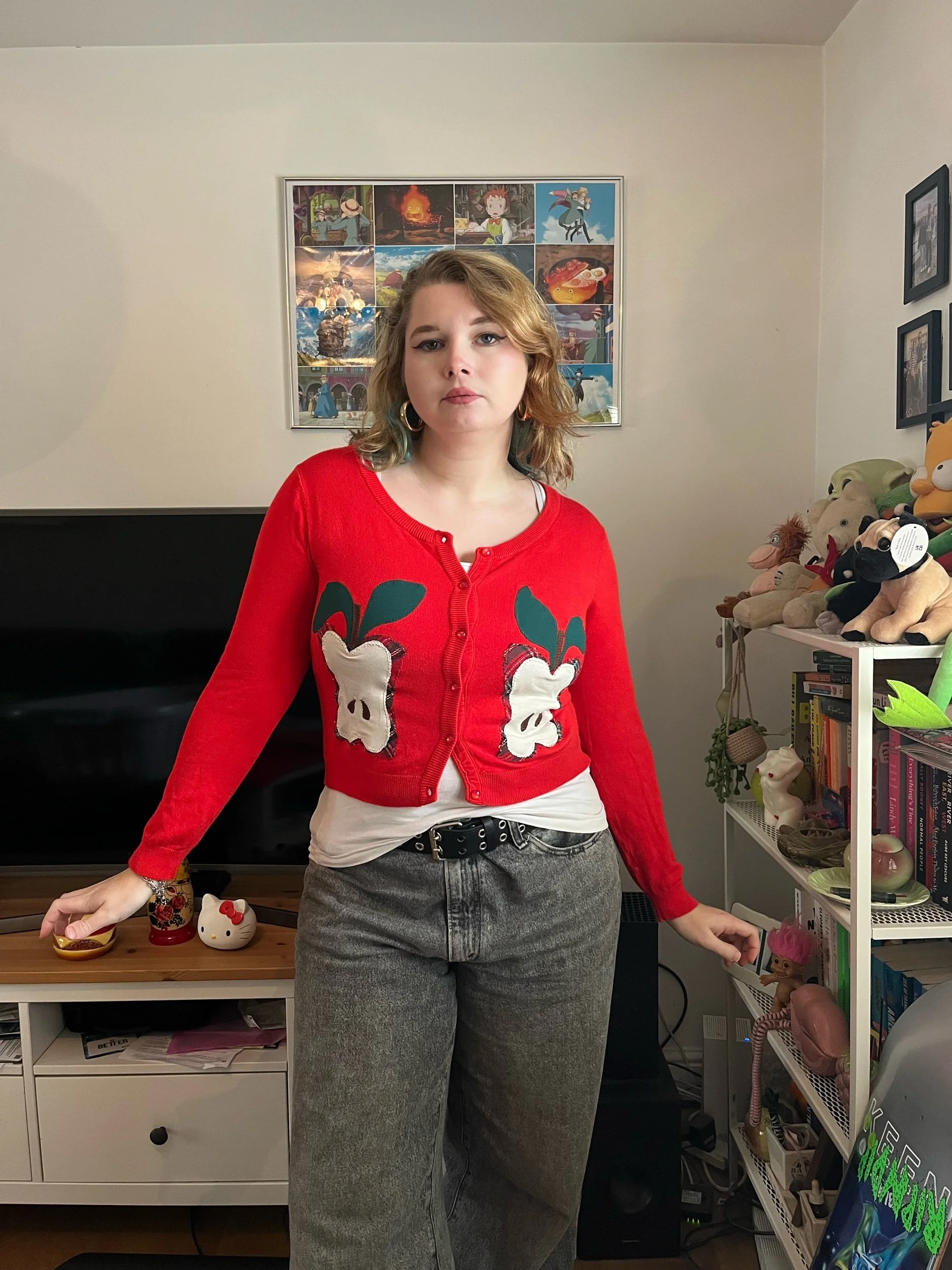 Red Apple Cropped Cardigan (M)