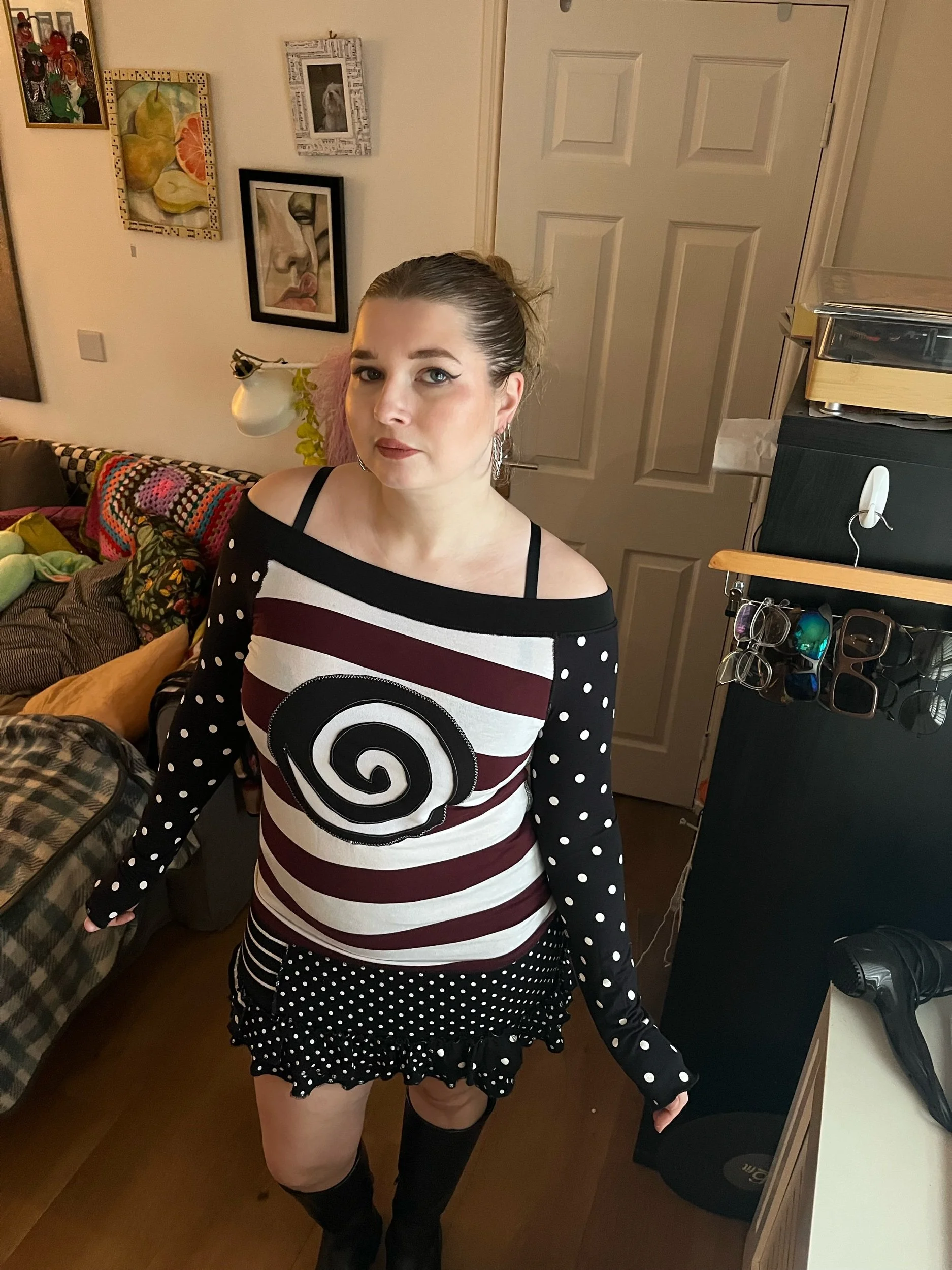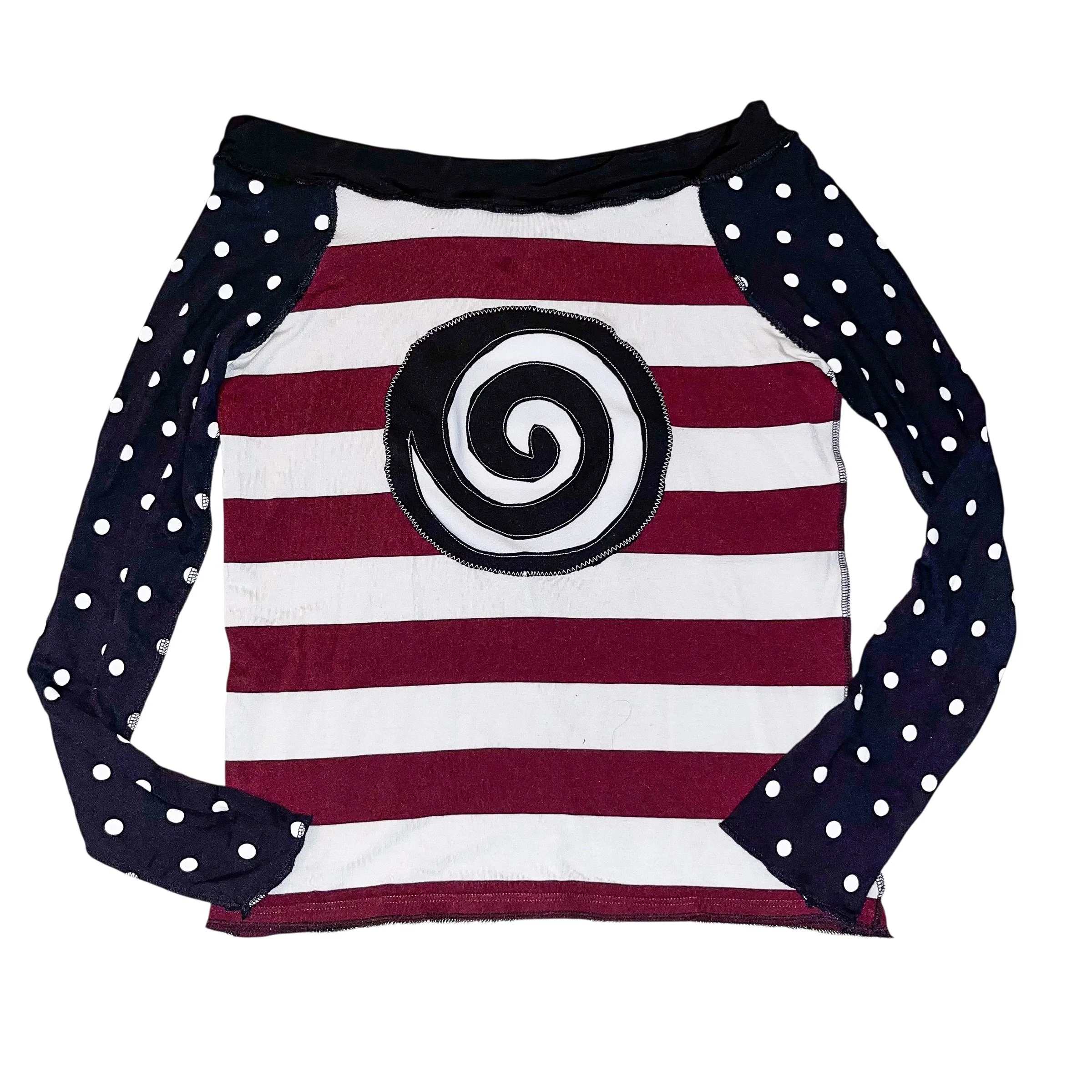 Stripe/Polka Dot Swirl Off the Shoulder Top (M)