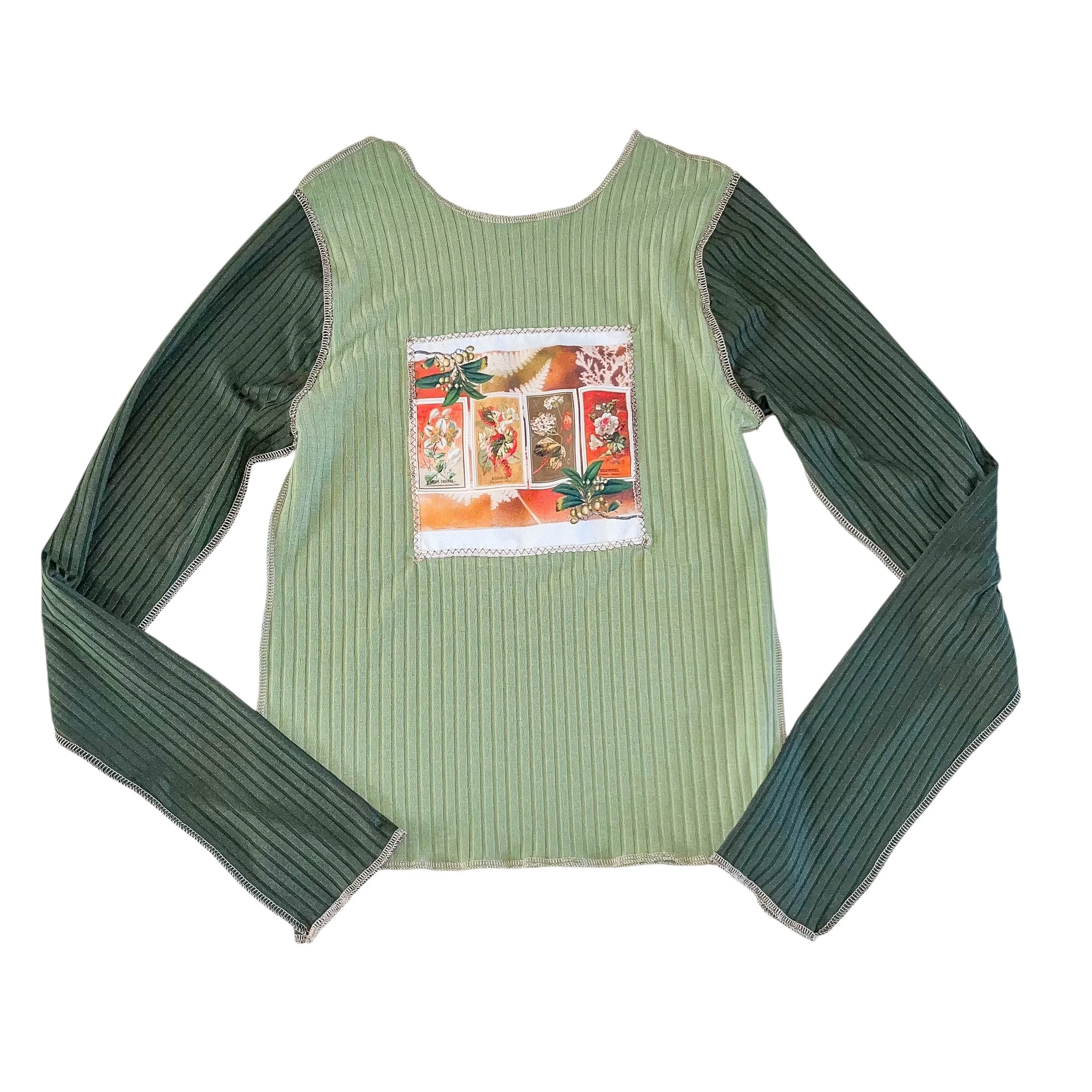 Small Chest width: stretches to 36” length: 18” sleeve length: 26” sleeve width: 12”