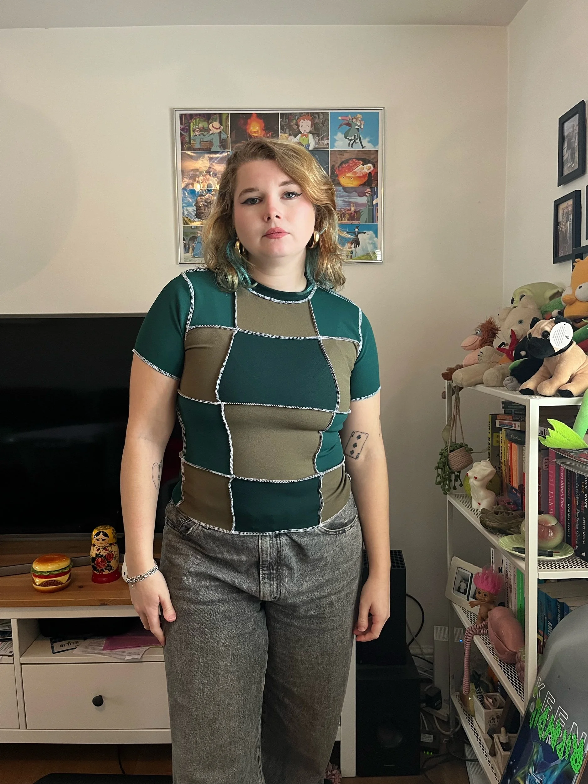 Khaki/Bottle Green Patchwork Checkerboard Tee (M)