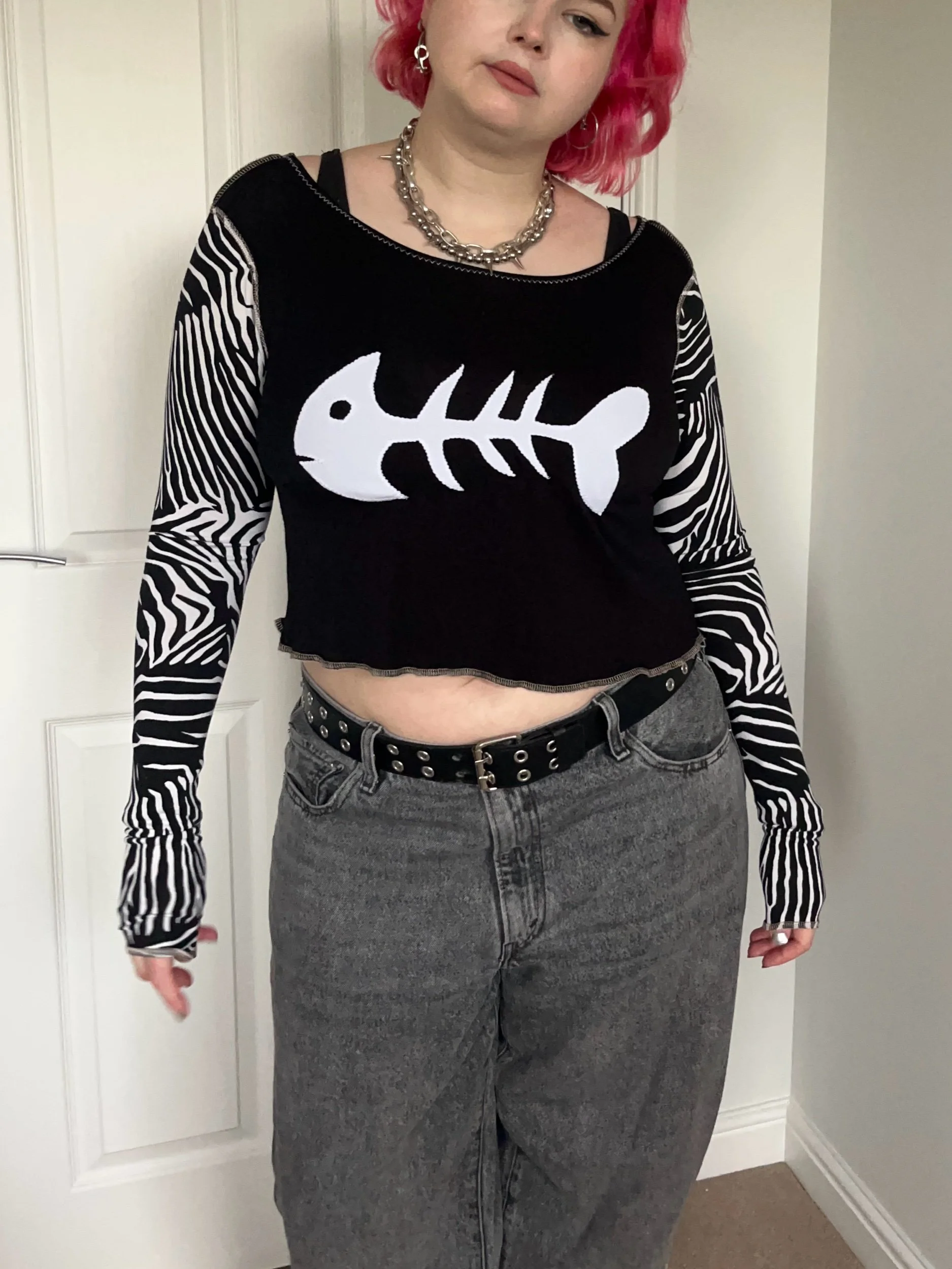 This top is a constructed using reworked clothing and scrap fabrics. Made from a mixture of stretch cotton and stretch lycra.