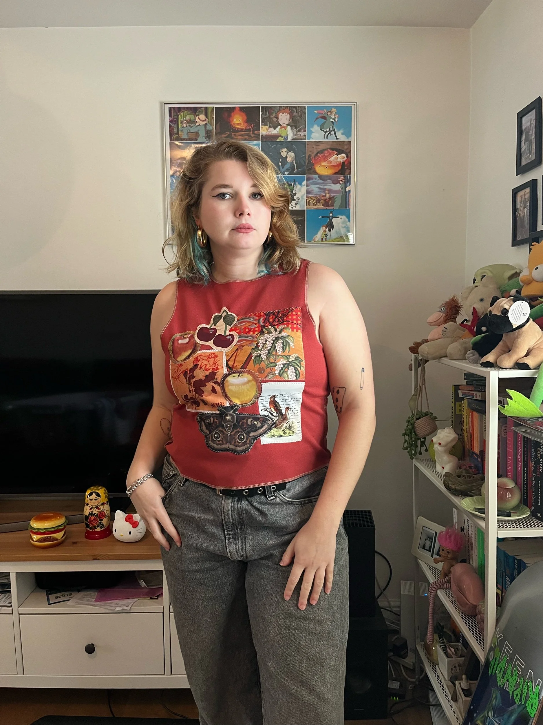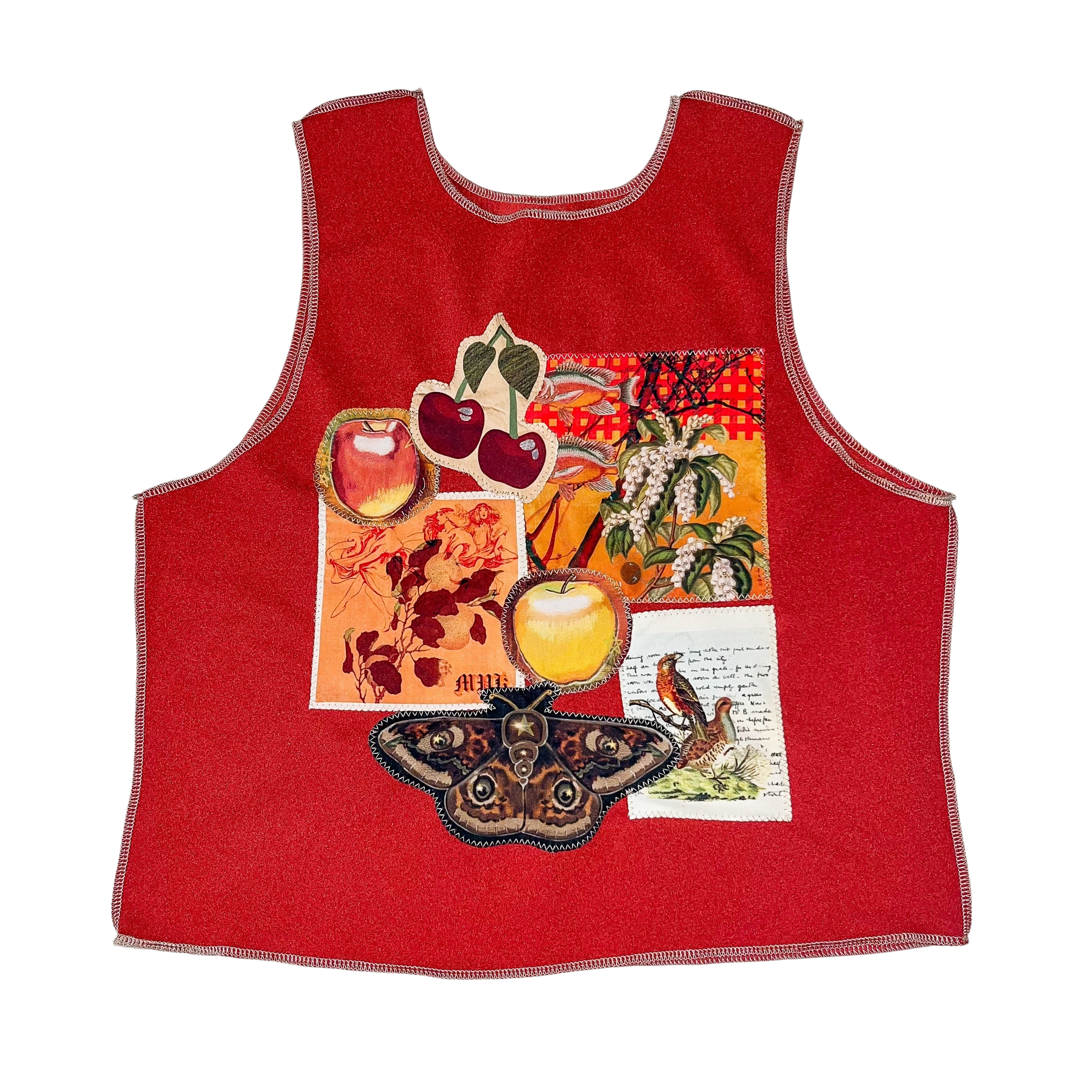Made from a remnant fabric and patches featuring original prints. Made from a mixture of polyester and stretch lycra.