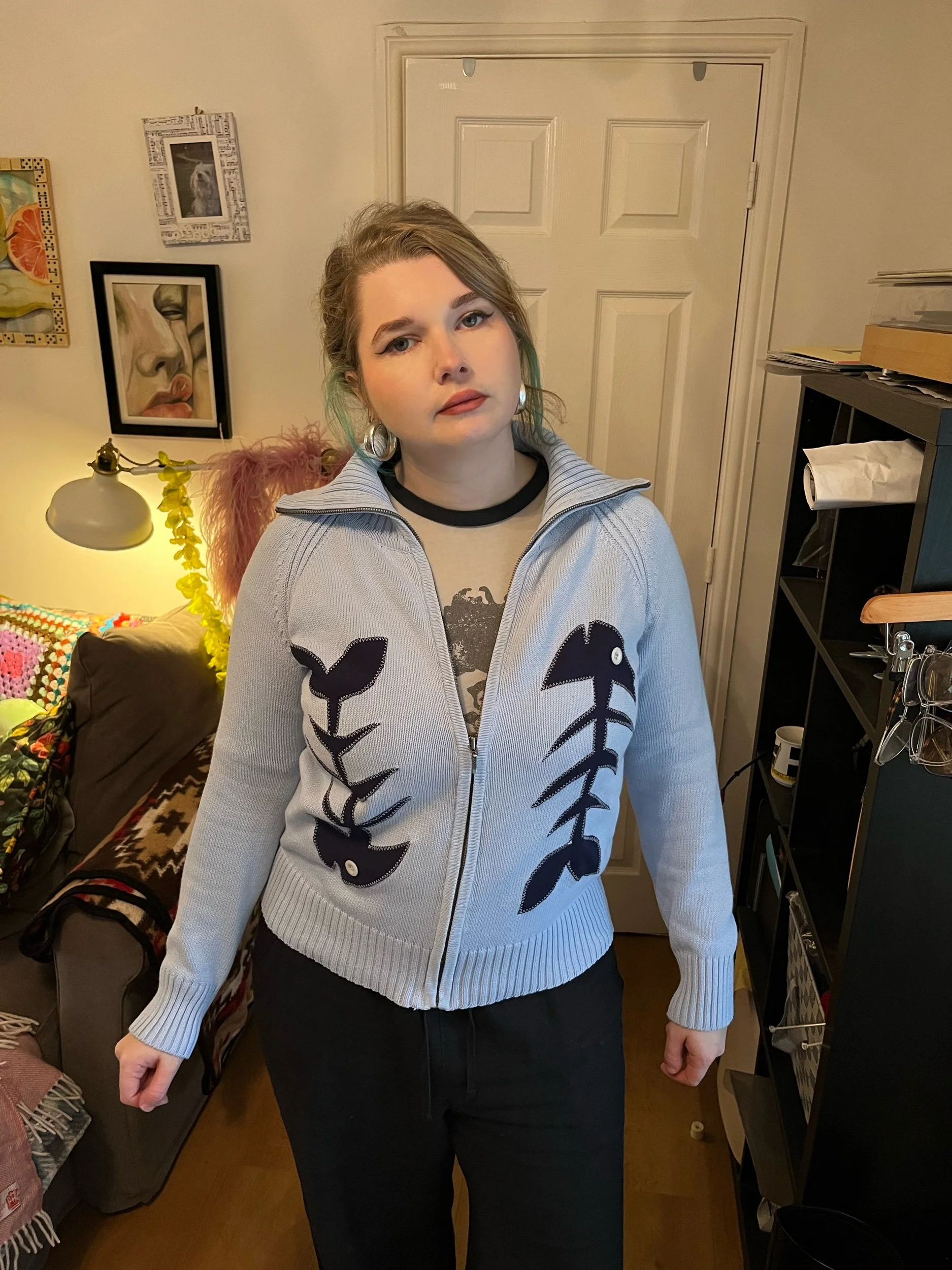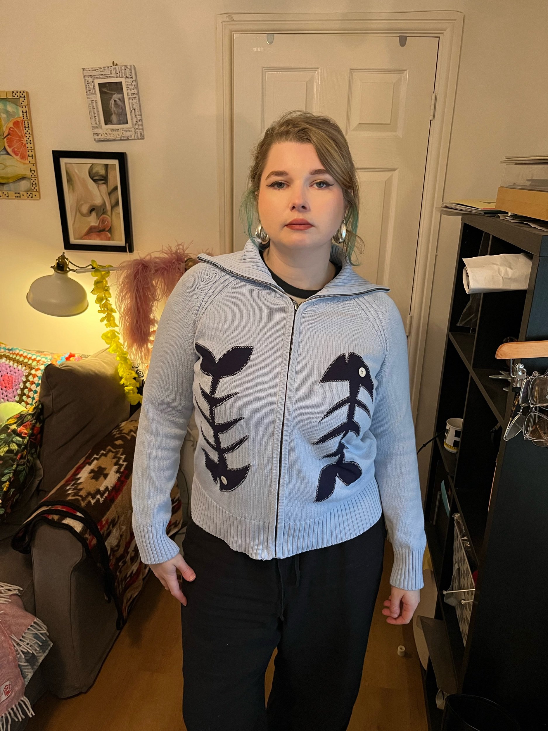 Medium chest width: stretches to 48” length: 23” sleeve length: 26” sleeve width: 16”