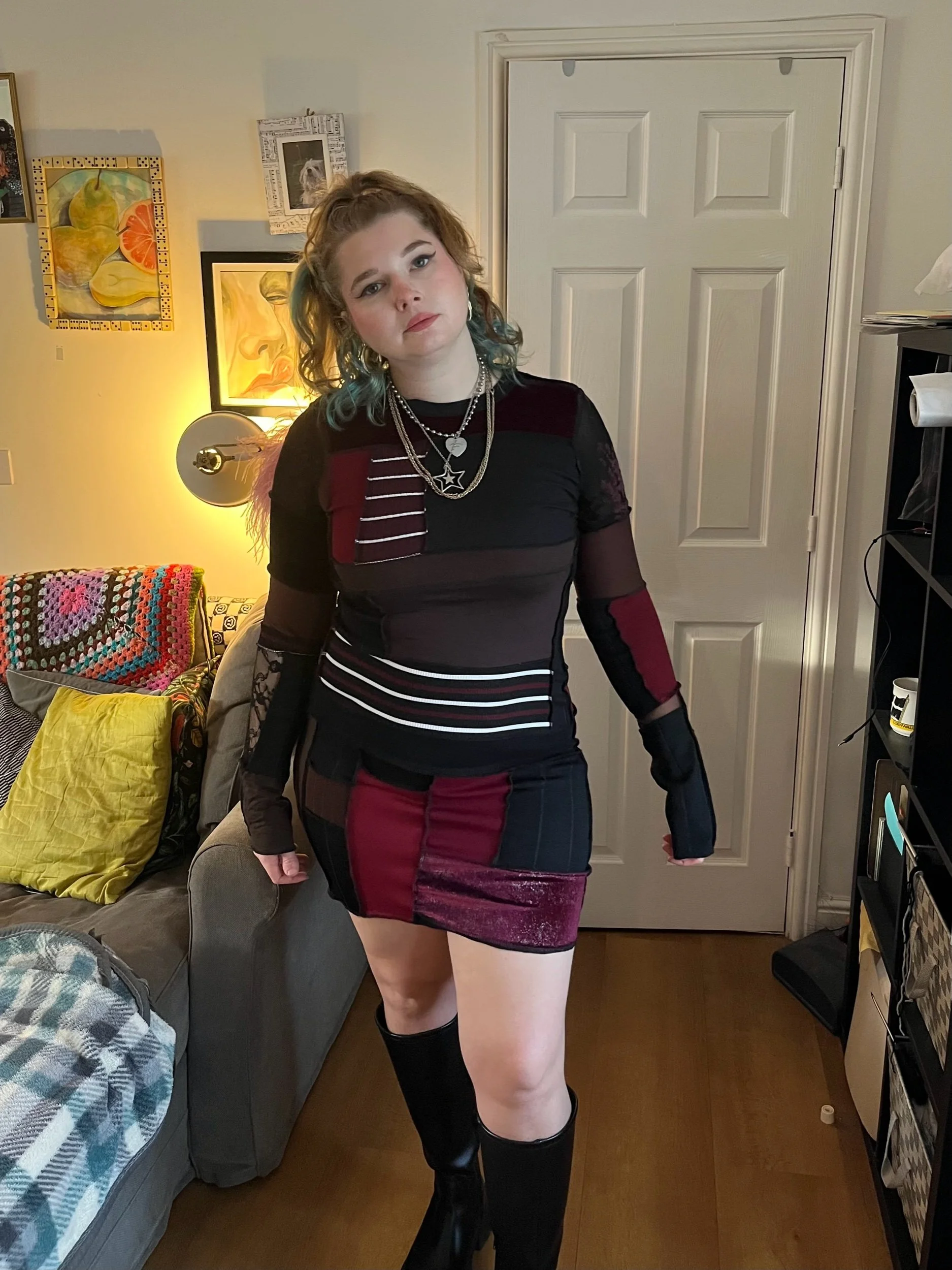 Wine/Brown/Black Patchwork Overlockher Dress (S)