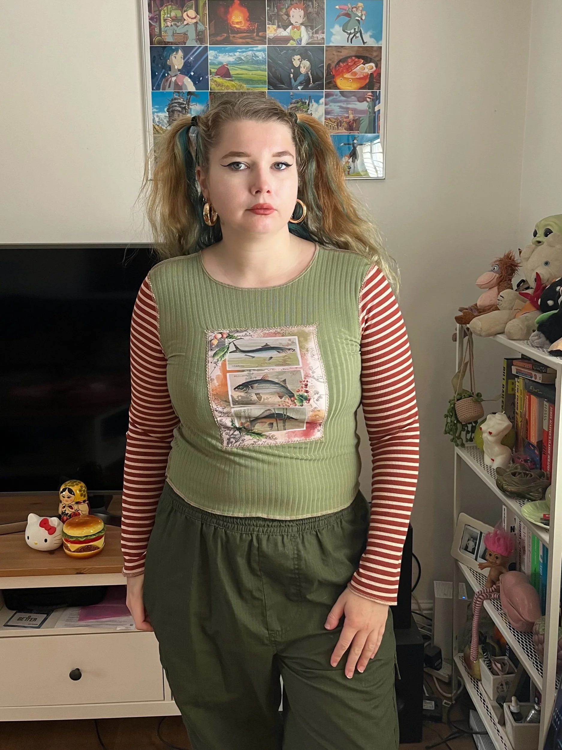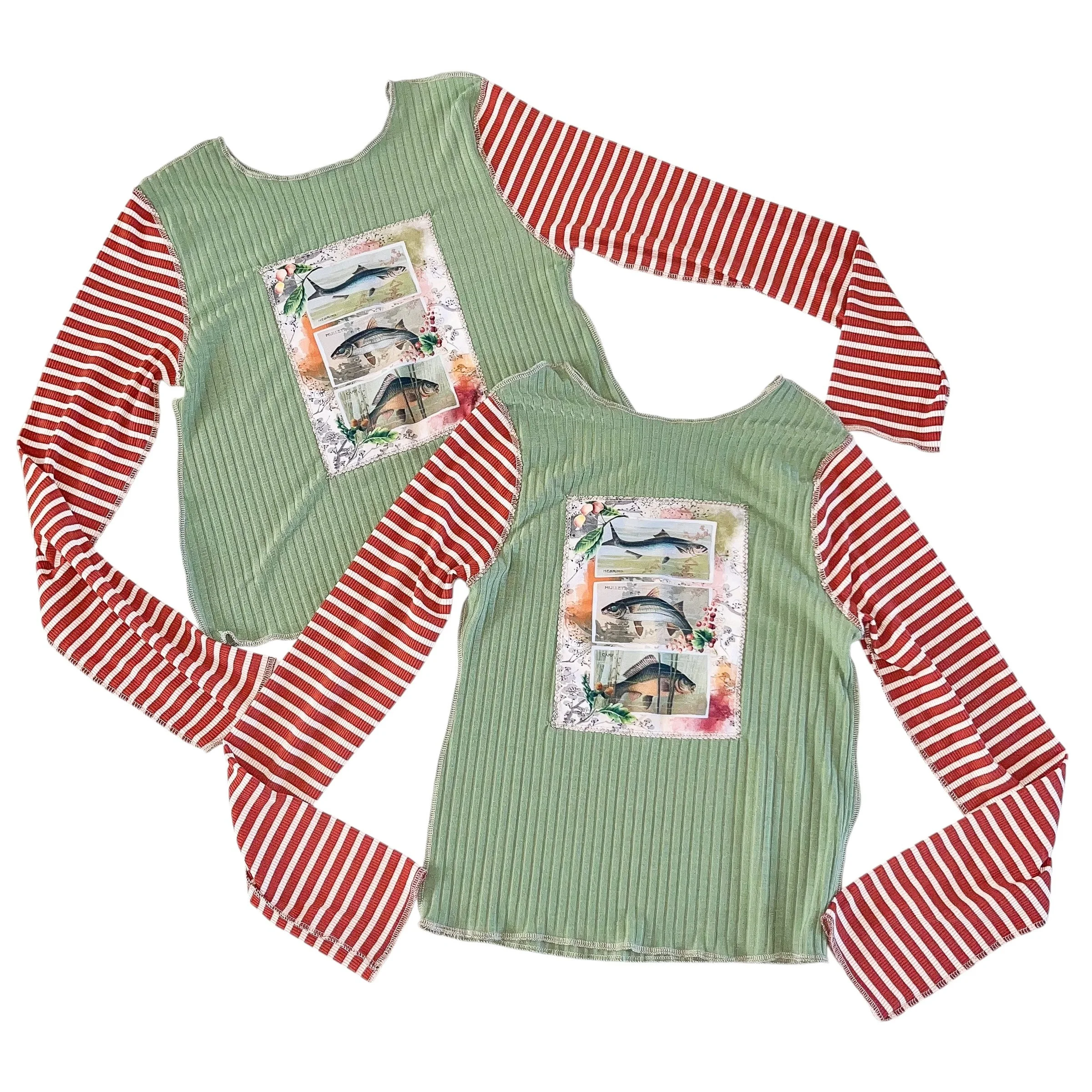 Small Chest width: stretches to 34” length: 19” sleeve length: 24” sleeve width: 12”