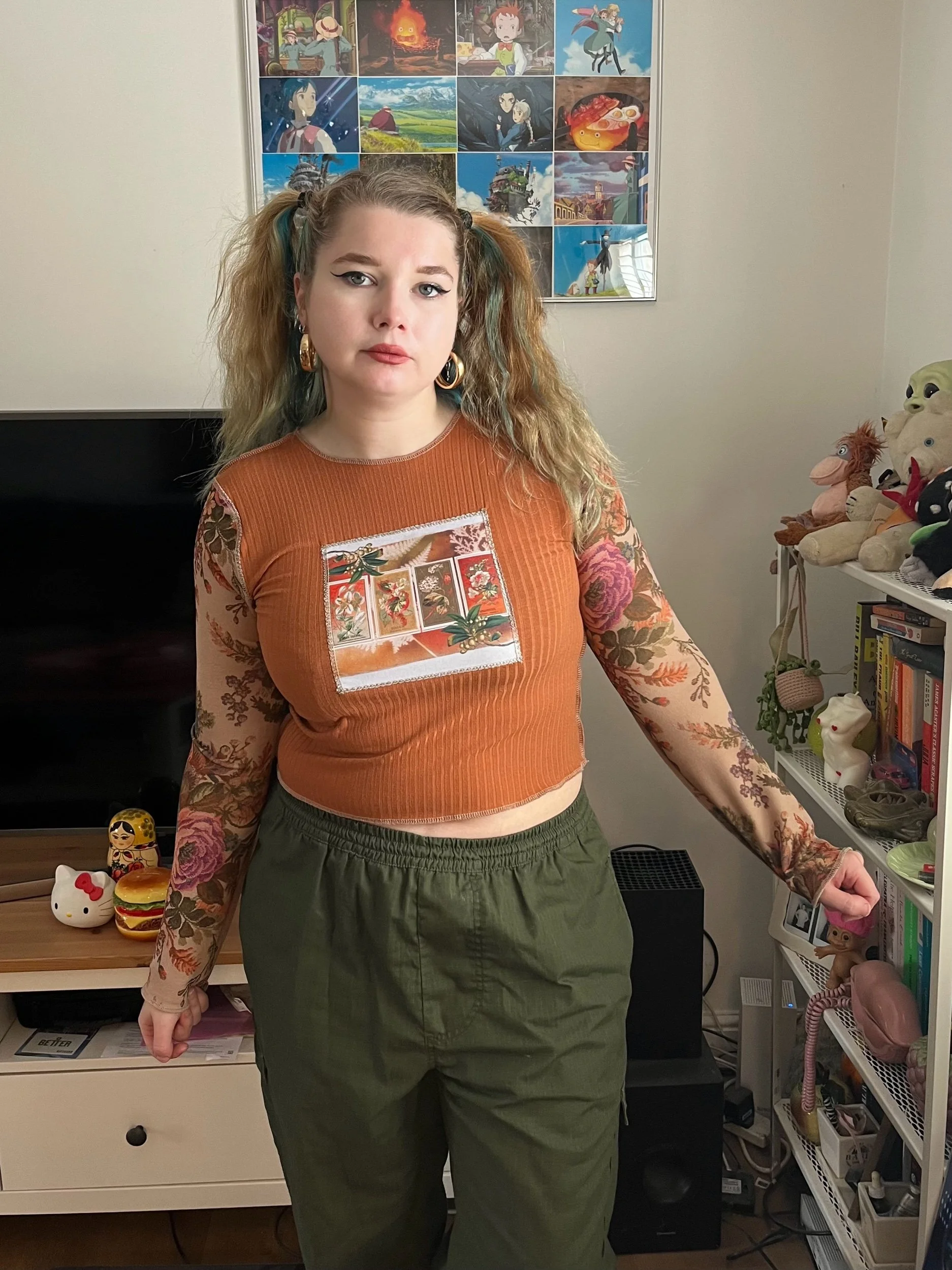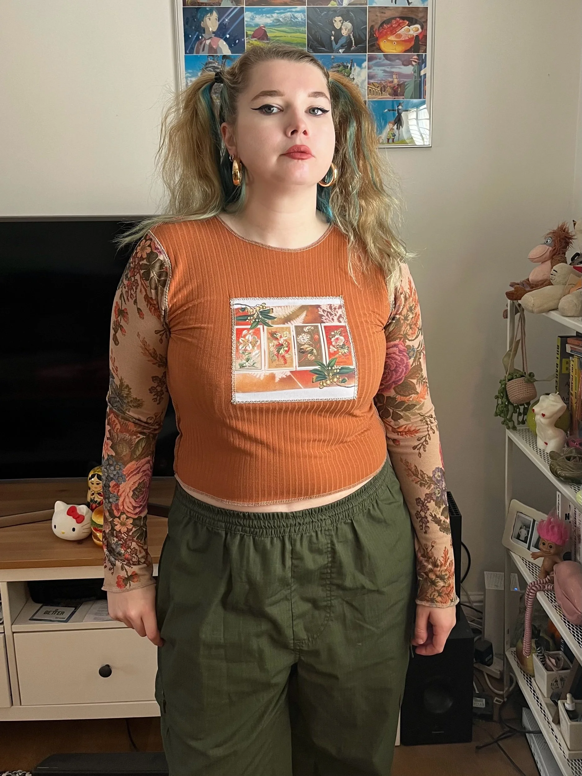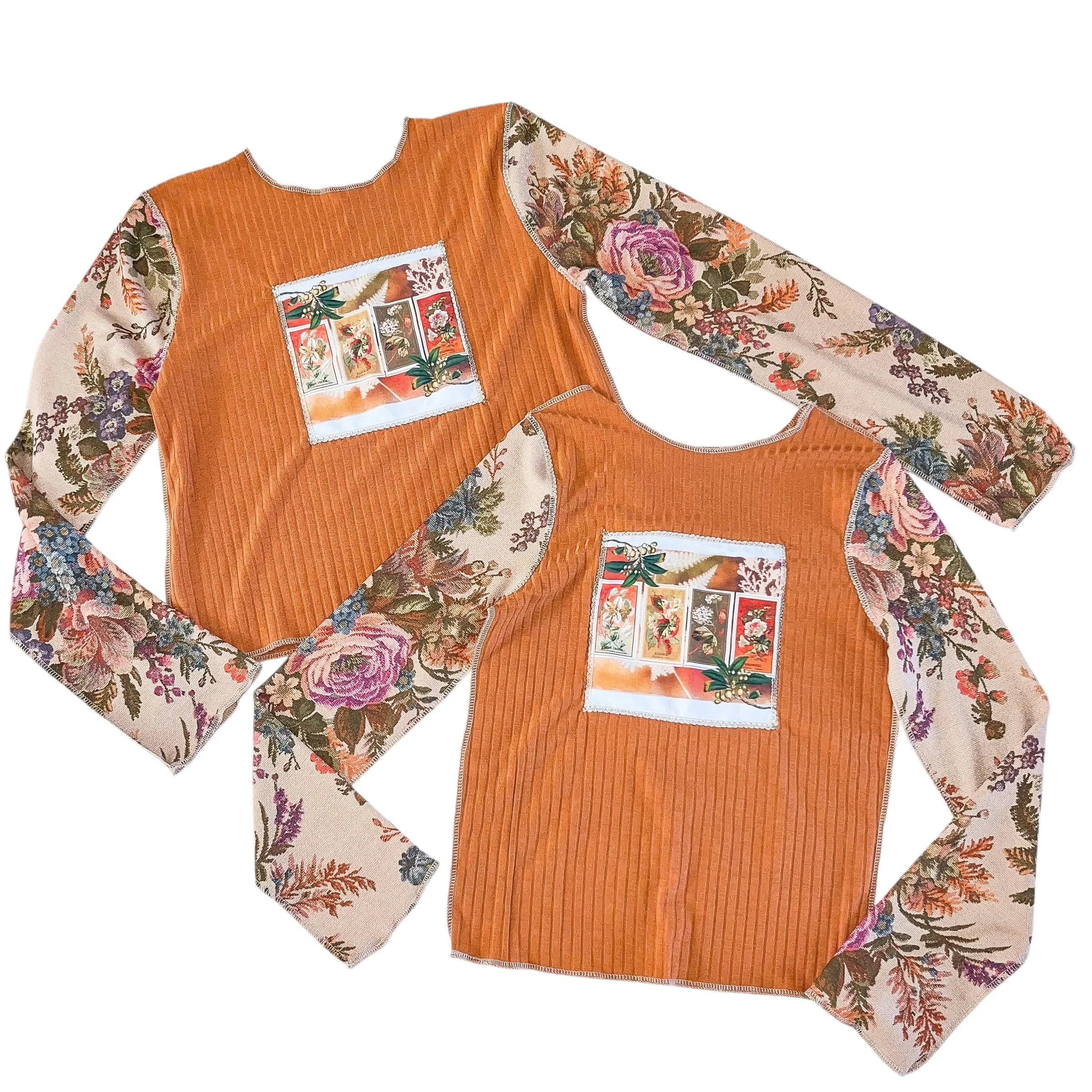 Terracotta/Floral Autumn Flowers Long Sleeve (S & M)