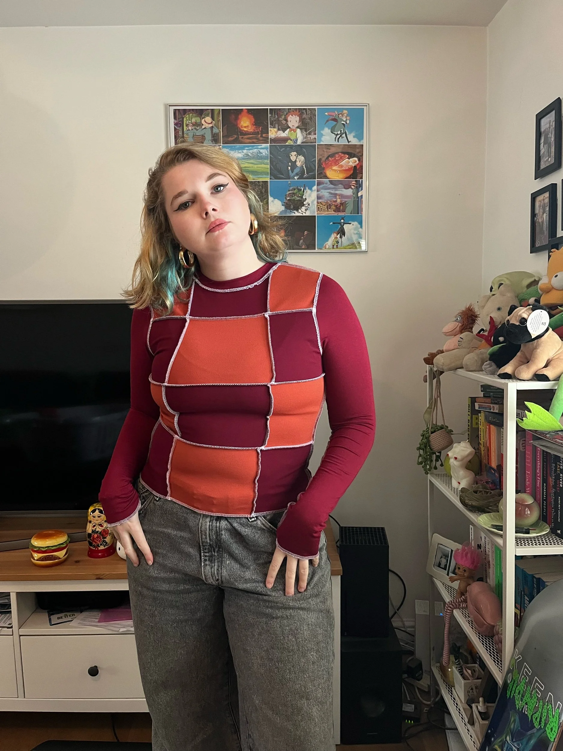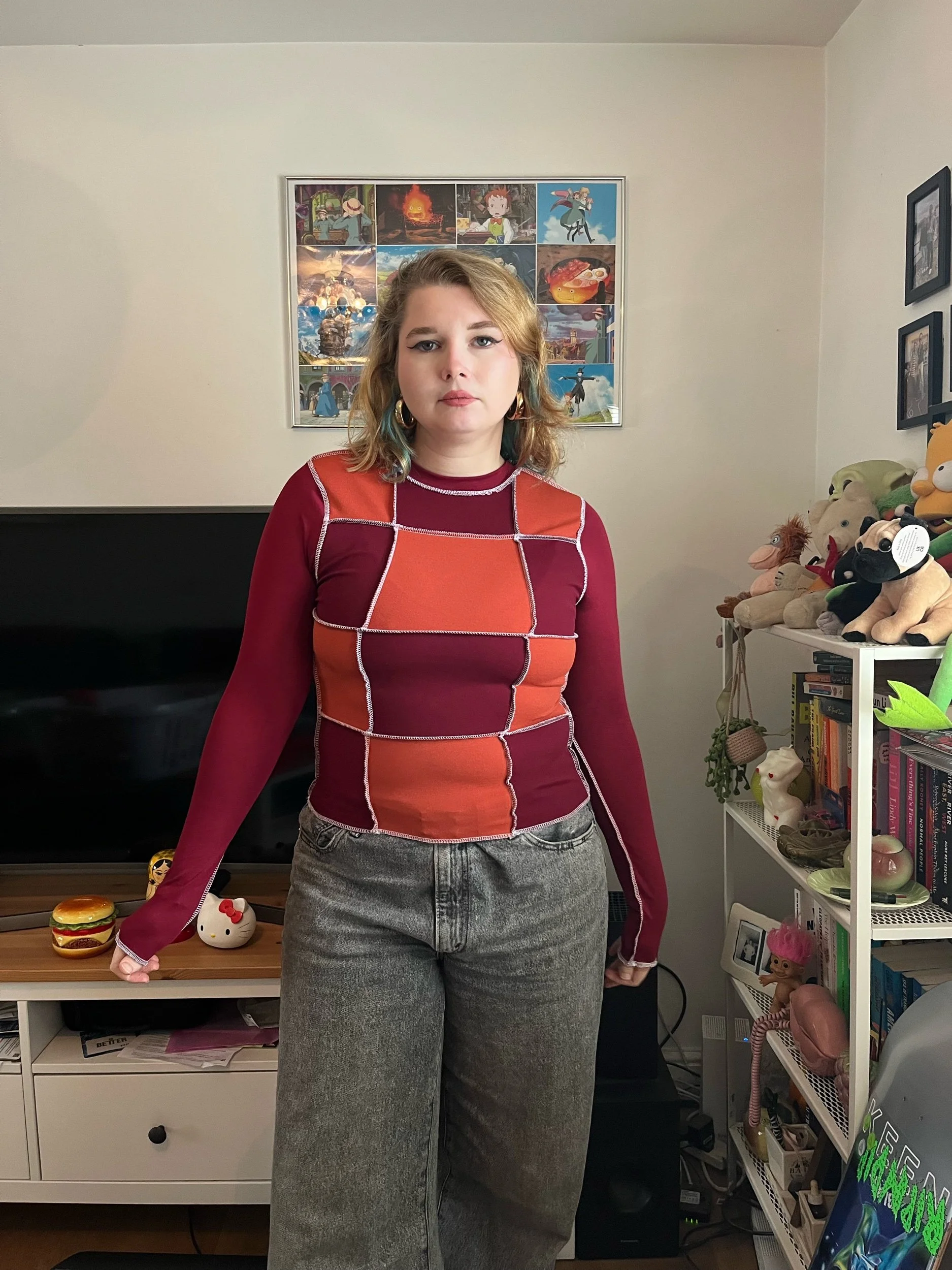 Wine/Terracotta Patchwork Checkerboard Long Sleeve (M)